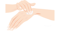 手洗い後、水分を拭き取ってから手の甲に適量をのせ、甲を重ね合わせながらハンドクリームを広げてください。